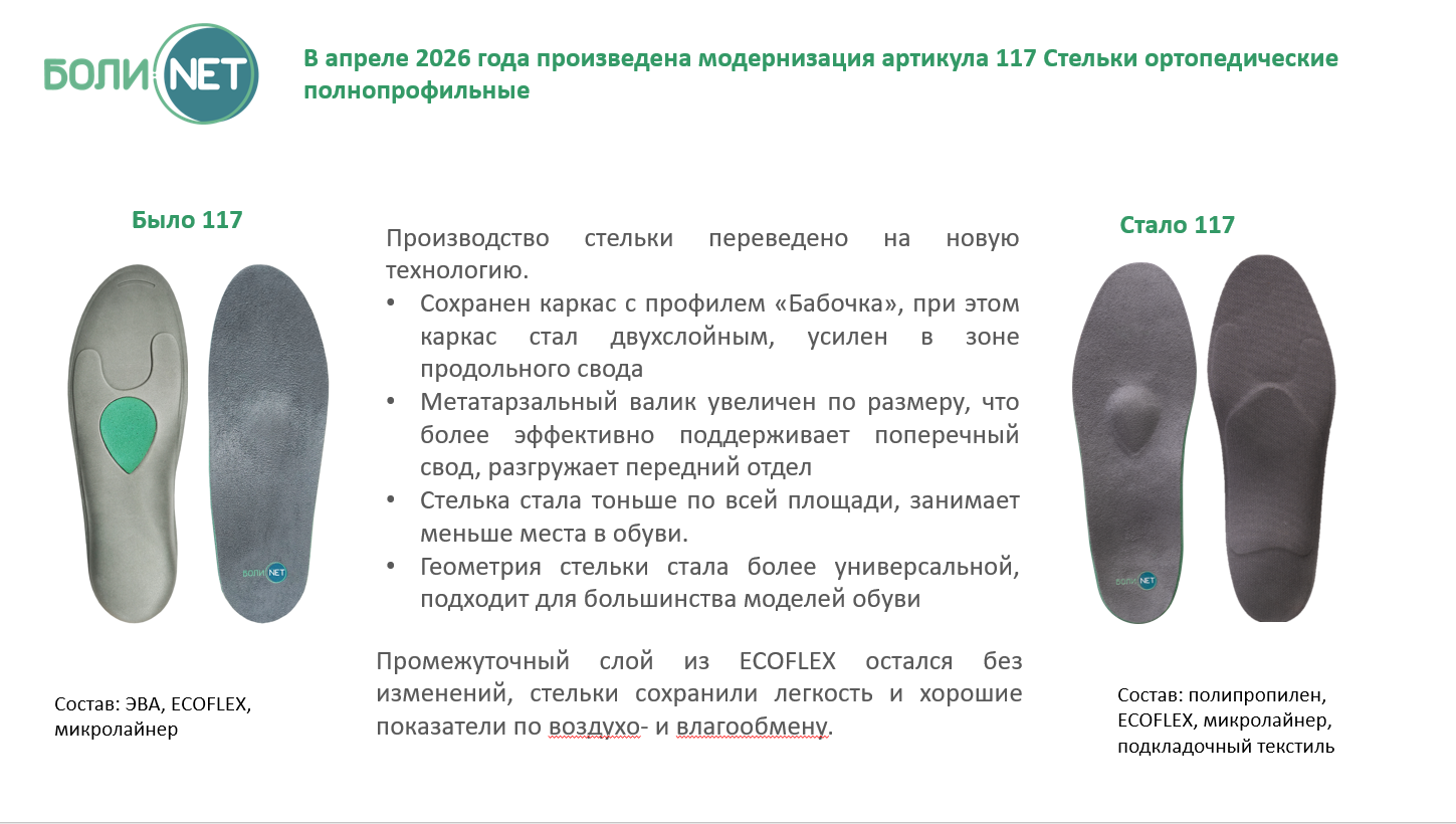 СТЕЛЬКИ ОРТОПЕДИЧЕСКИЕ ПОЛНОПРОФИЛЬНЫЕ, АРТ. 117